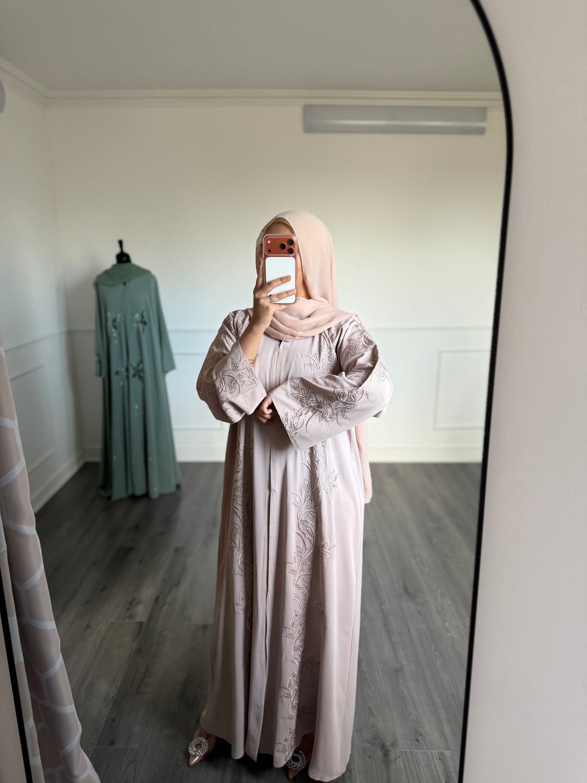 Cette abaya une abaya Made in Dubai / Matière Nida et brodée  Opaque fluide