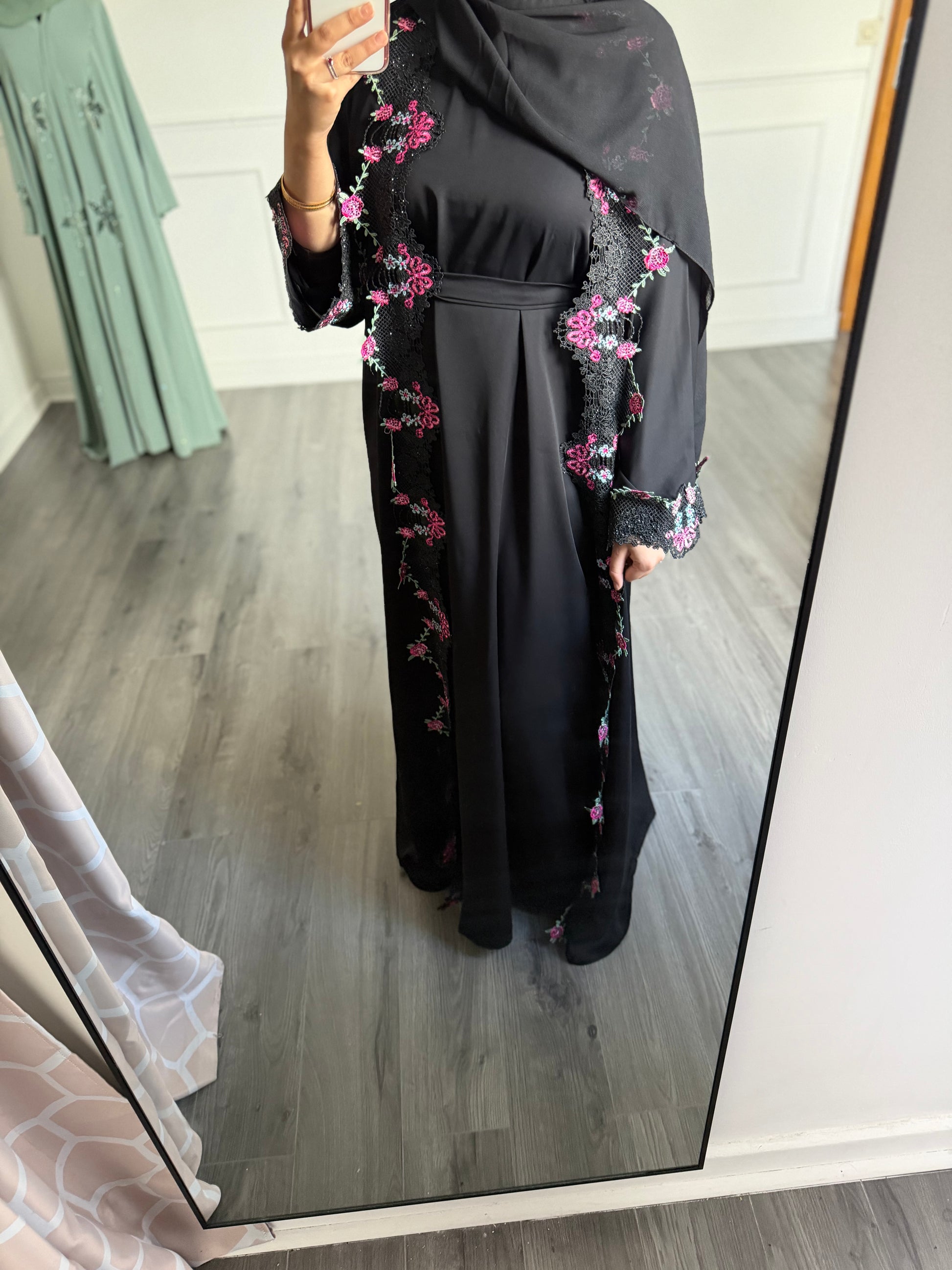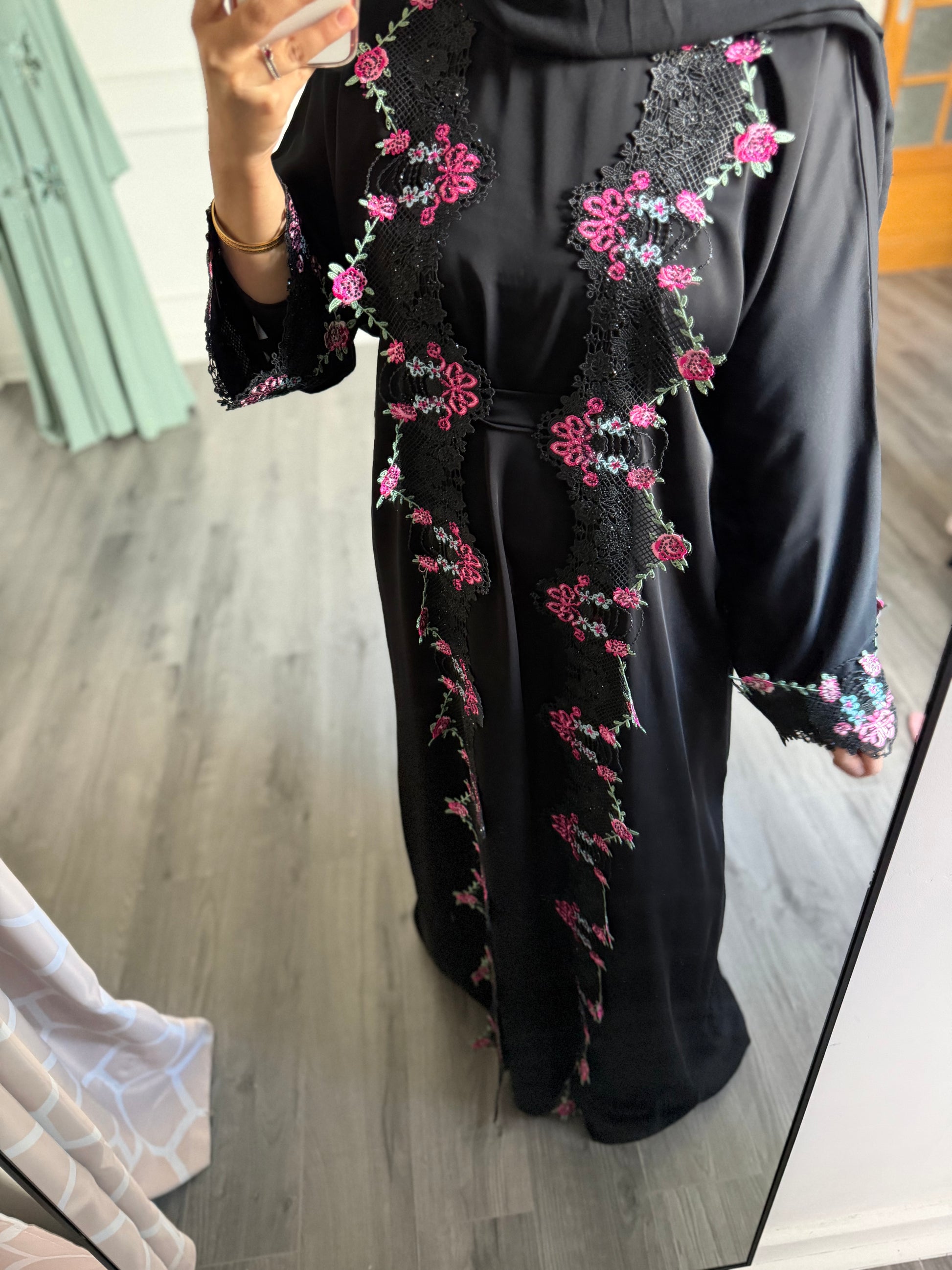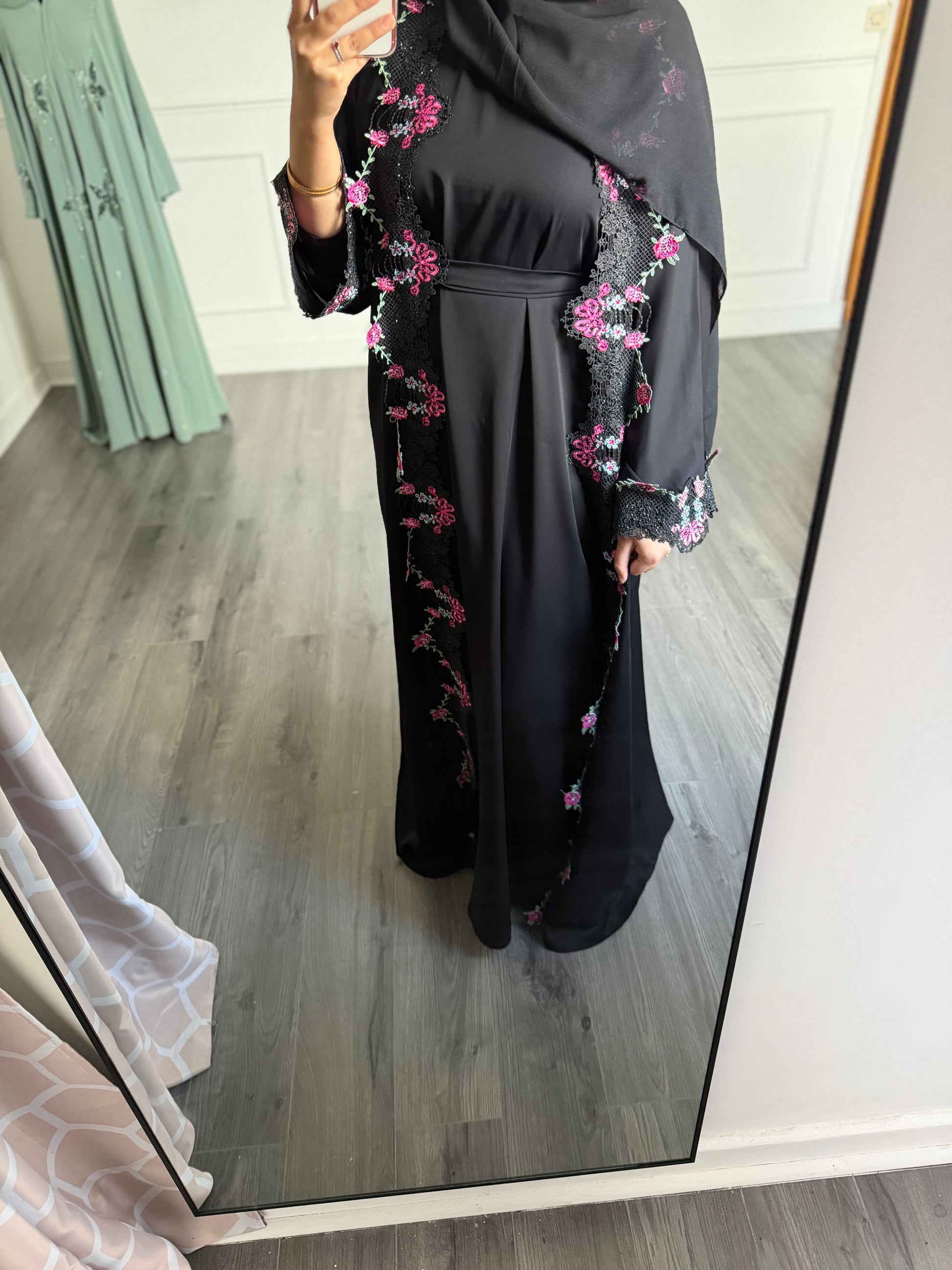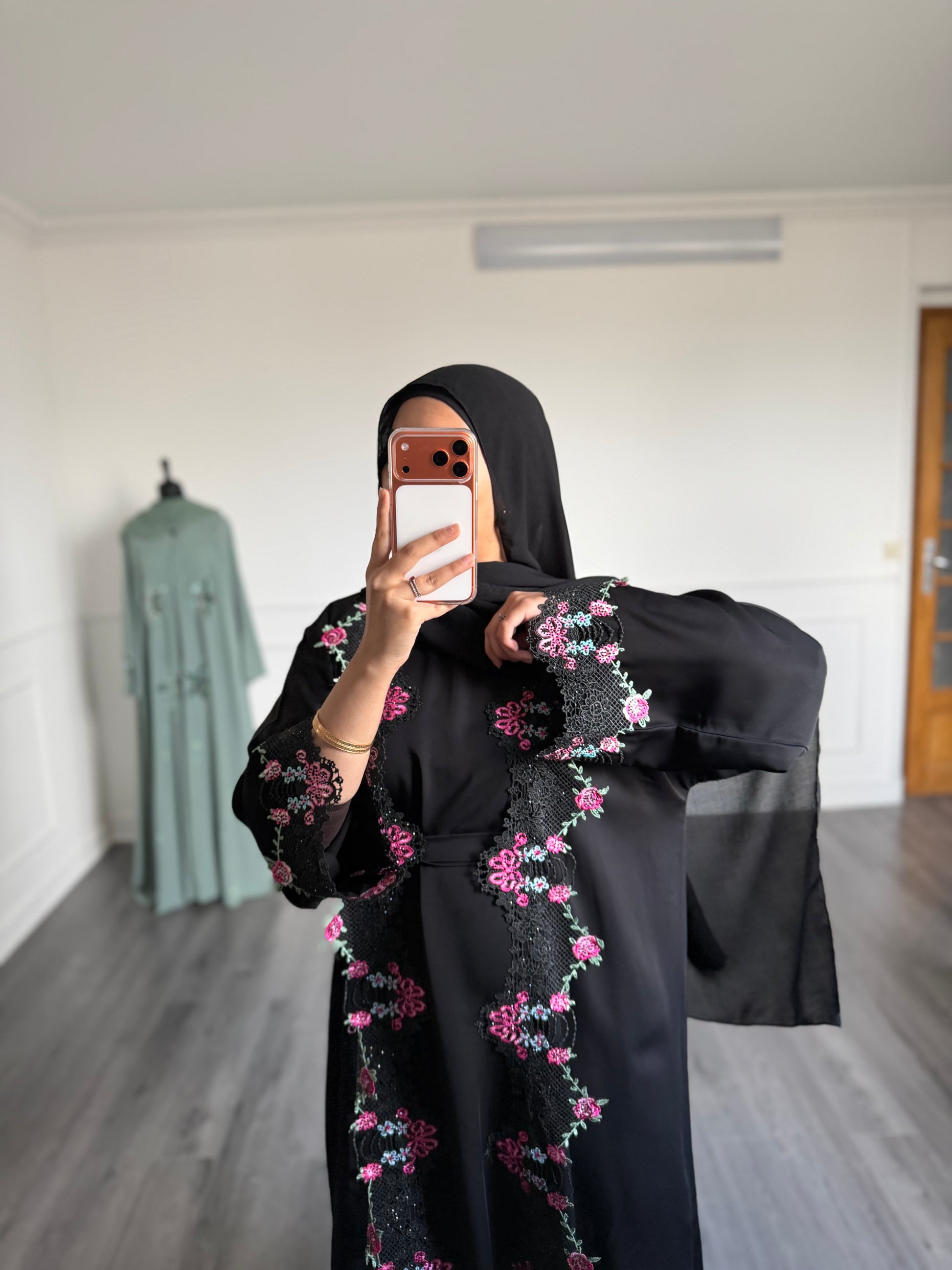 Ensemble 3 pièce sous robe manche courte, kimono et voile et ceinture