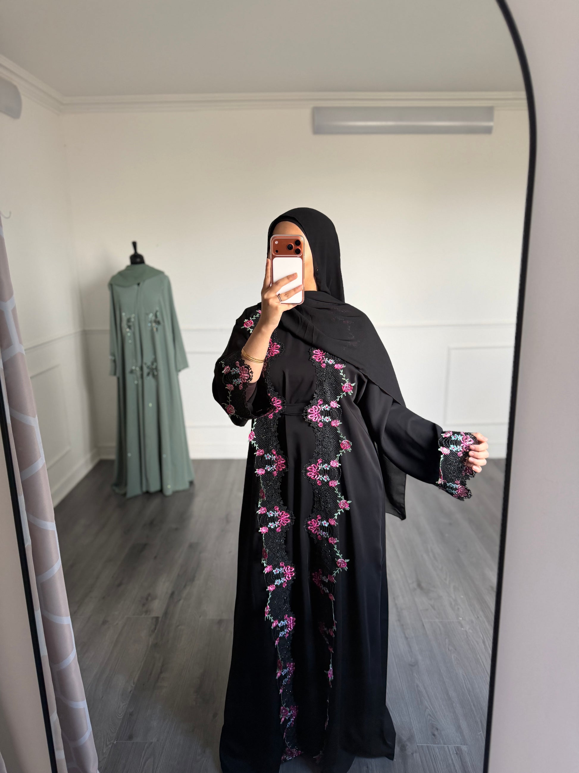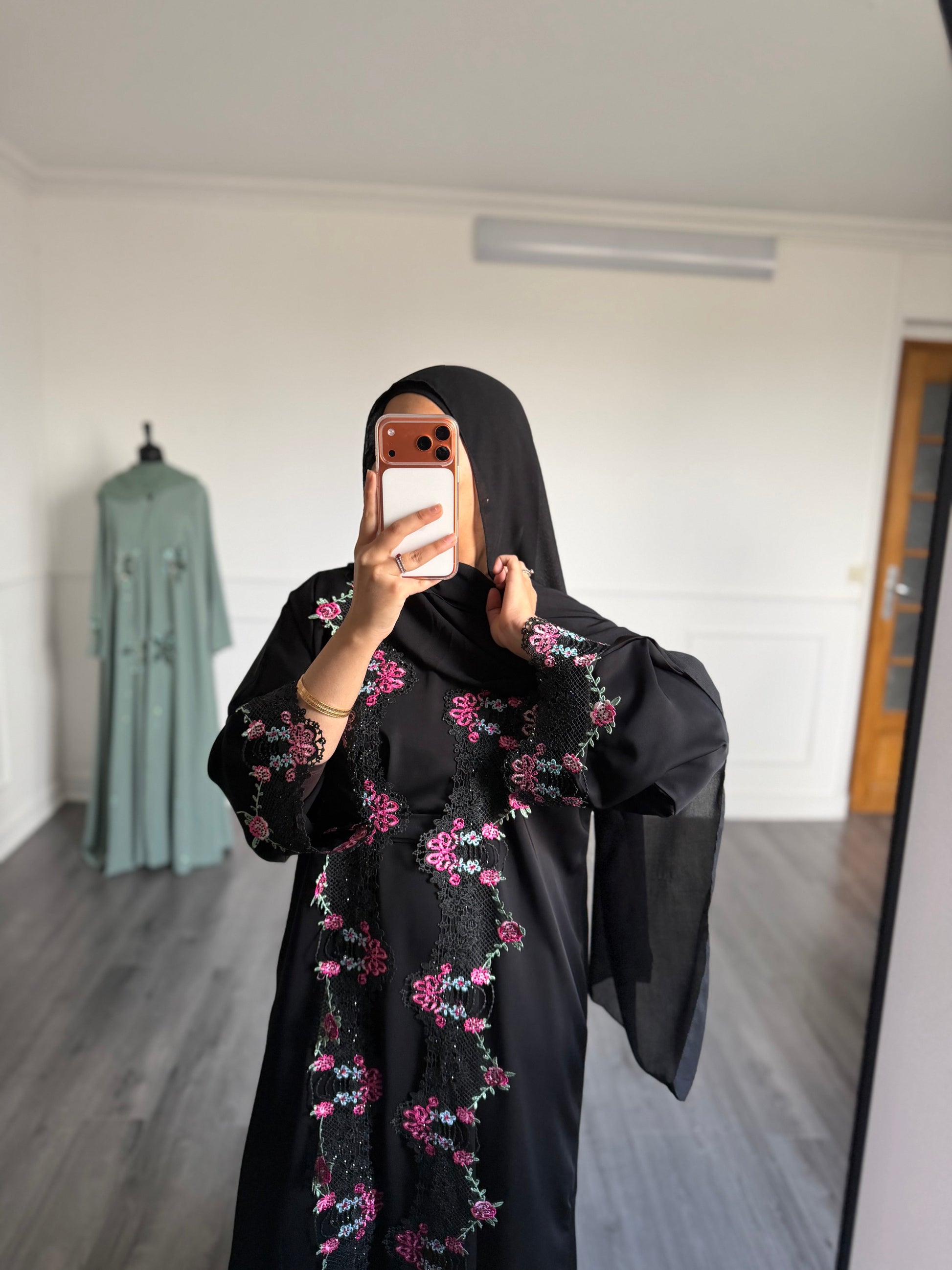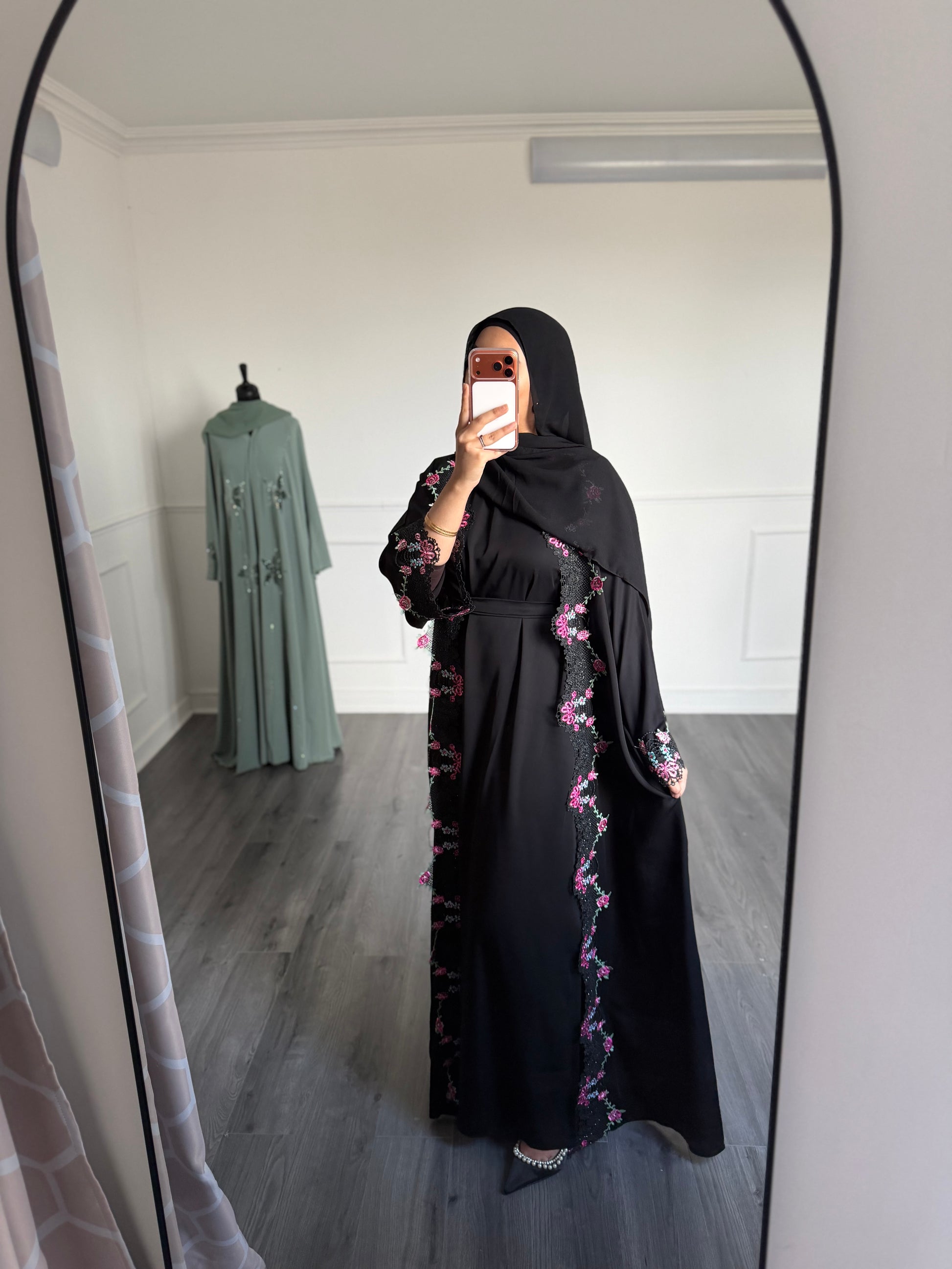 Ensemble 3 pièce sous robe manche courte, kimono et voile et ceinture