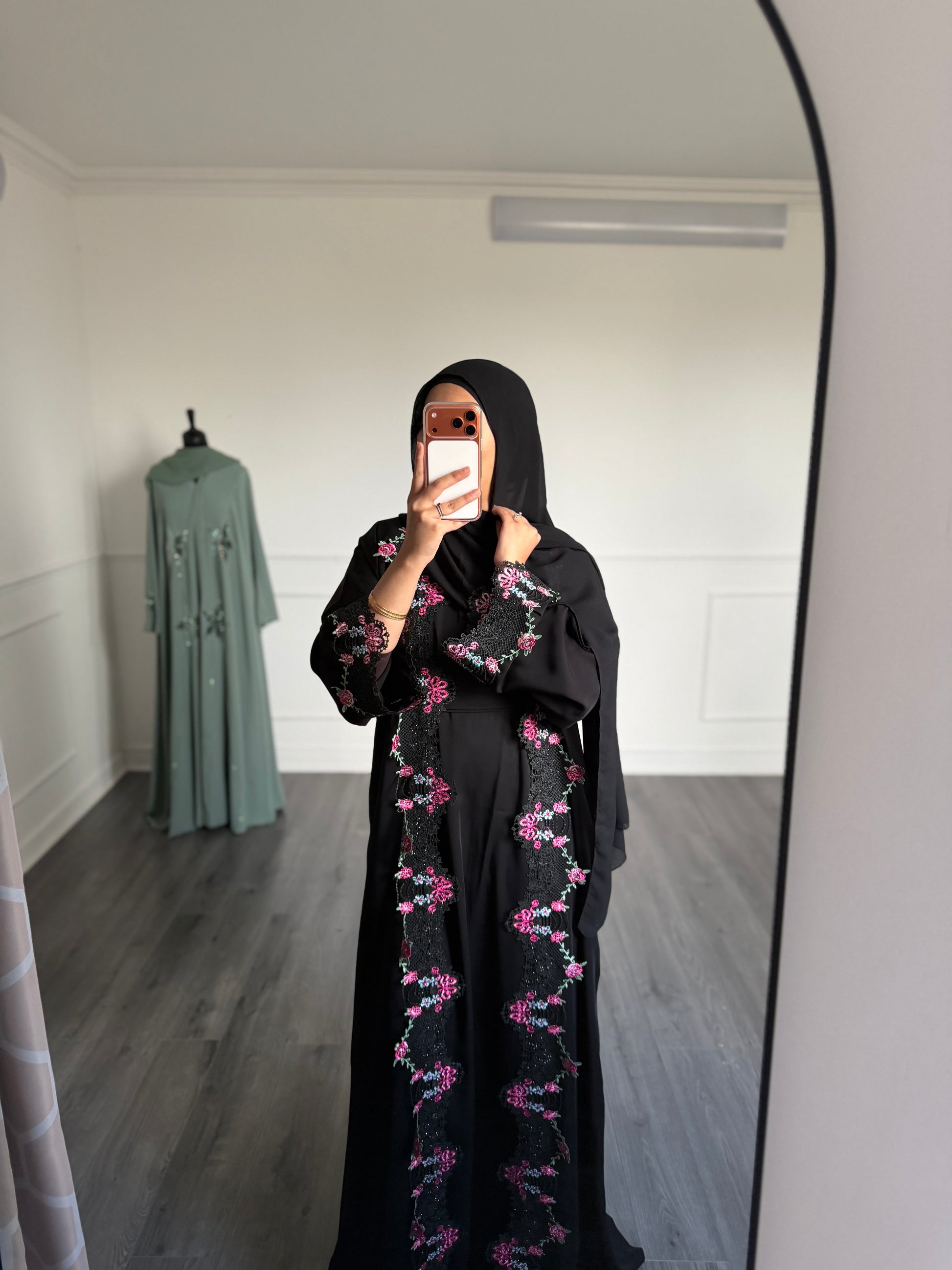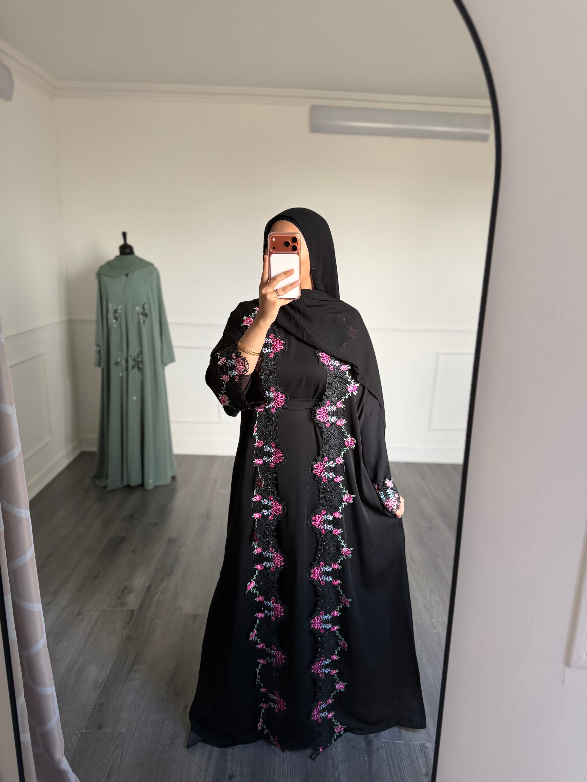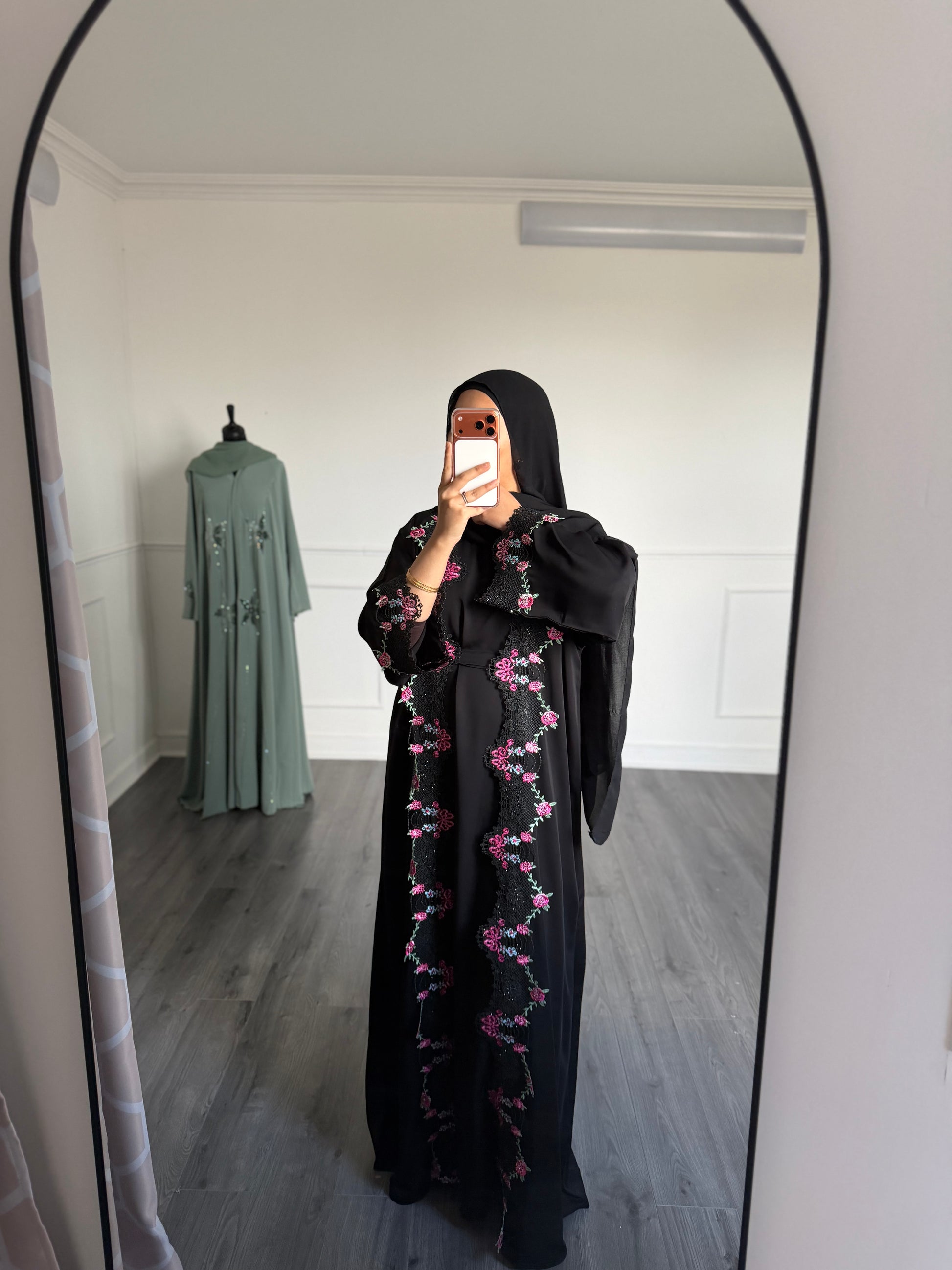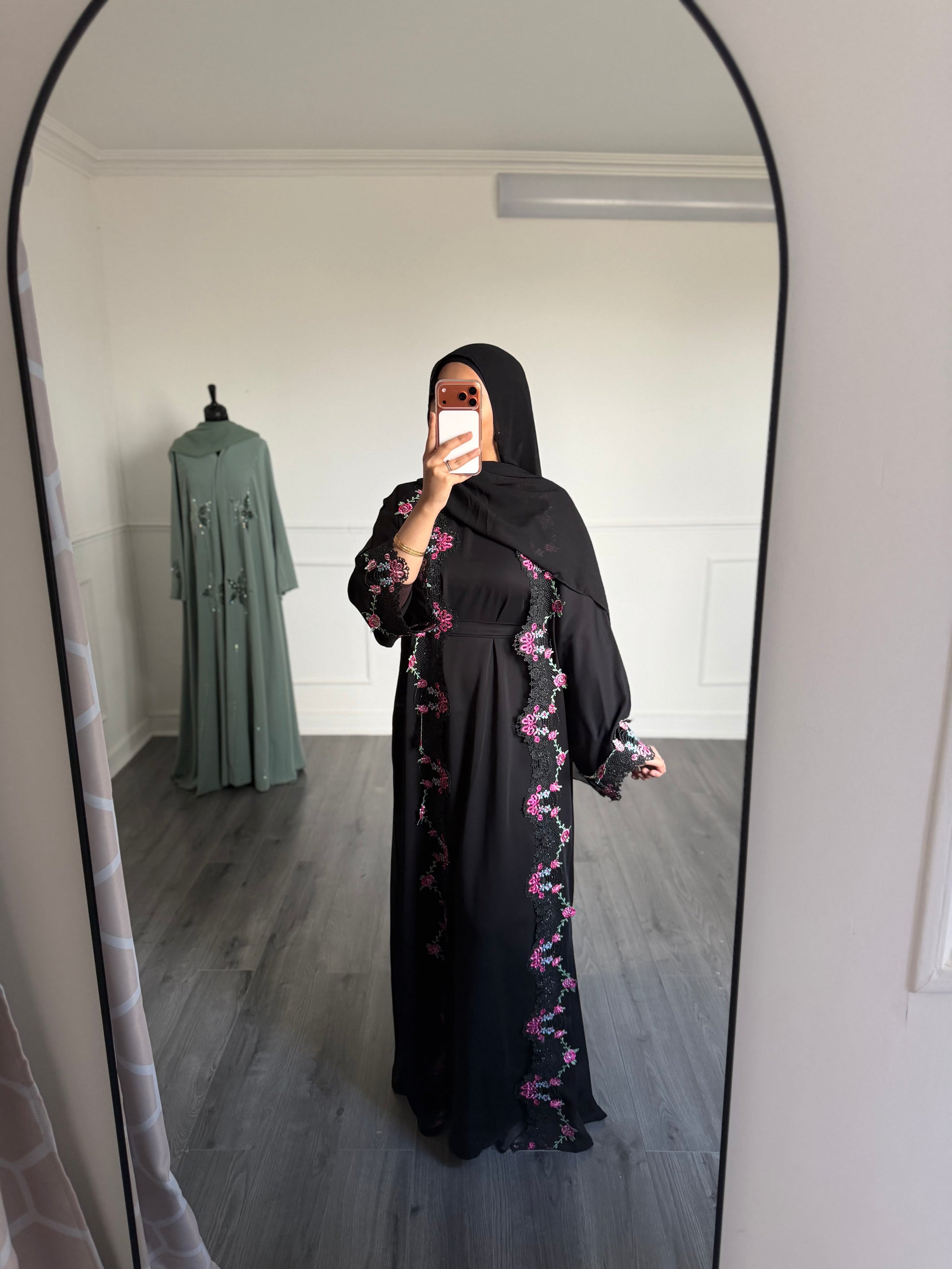 Ensemble 3 pièce sous robe manche courte, kimono et voile et ceinture